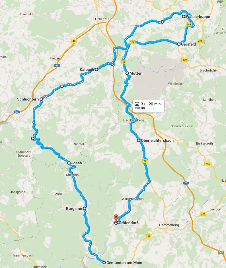 Niet lang later reizen we over bergen en dalen net onder het Sauerland door richting Spessart en ruiken al de Schweinebraten en het Festbier. De laatste 100 km gaan dan ook gezwind over biljartlaken-glad asfalt langs vakwerkhuizen en weidevelden totdat de rotonde en brug in Gemünden ons neerzetten op het terras bij Zur Linde. Hoera!